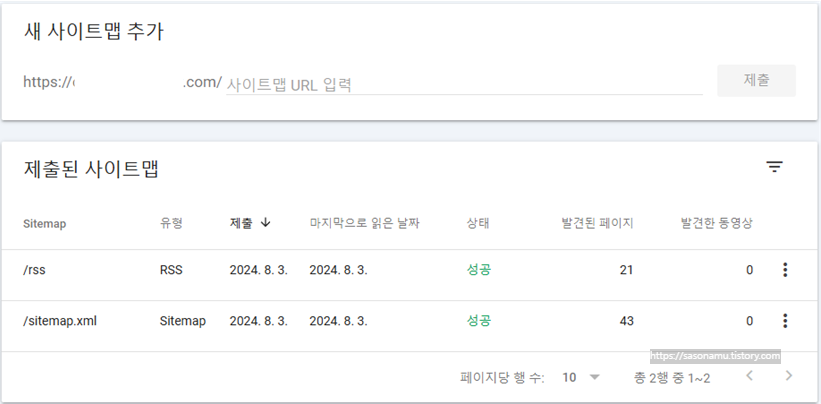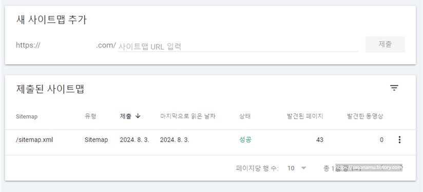 그러면 제출된 사이트맵에 등록되는 것을 확인할 수 있습니다.