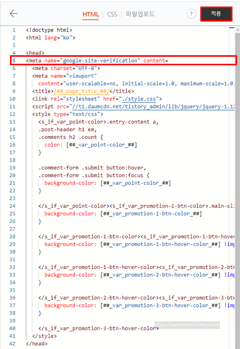HTML 태그 추가로 소유권 확인을 하겠습니다.