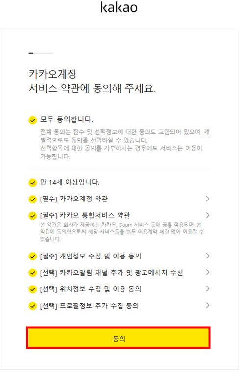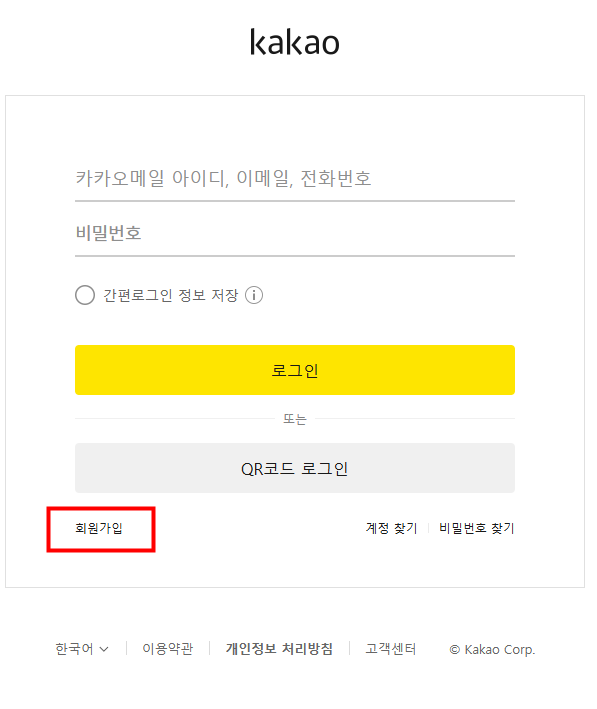 기존 카카오 계정이 없다면, 계정을 생성한 후 가입 절차를 진행하면 됩니다.