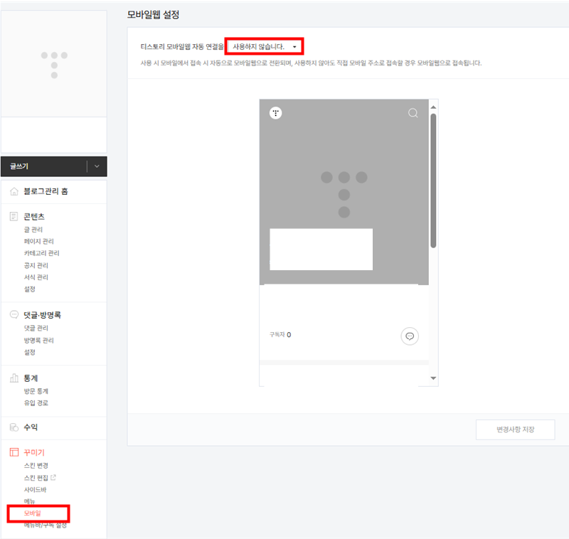 - 모바일웹 자동연결 : 사용하지 않습니다.