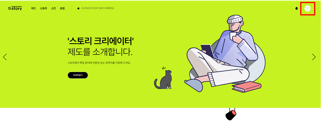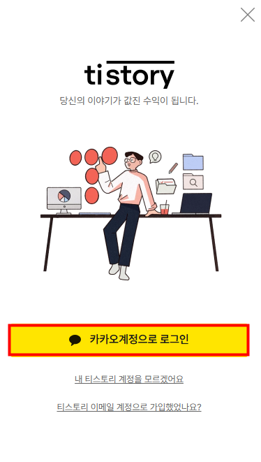 티스토리 블로그를 시작하려면 먼저 티스토리 사이트에 접속하여 회원 가입을 해야 합니다.
