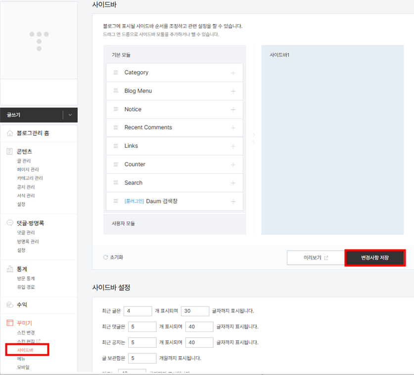 사이드바에는 최근 글, 인기 글, 전체 방문자 수 등의 정보가 표시되며, 이러한 정보는 블로그 운영에 도움이 됩니다.