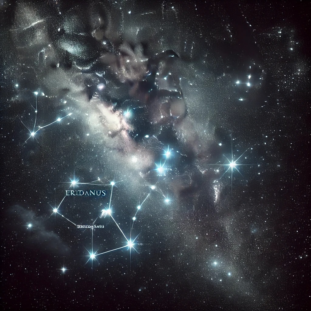 에리다누스자리는 그리스 신화에서 중요한 역할을 합니다. 이 별자리는 강의 신 에리다노스에서 이름을 따왔으며, 특히 파에톤 신화와 깊은 관련이 있습니다. 파에톤은 태양신 헬리오스의 아들로, 아버지의 태양 마차를 몰다 통제력을 잃고 추락하였습니다. 이 사건 후, 제우스는 그를 에리다노스 강에 떨어뜨렸고, 이 강이 하늘의 에리다누스자리로 형상화되었습니다. 이 신화는 에리다누스자리가 하늘에서 길고 구불구불한 모양을 하고 있는 이유를 설명해줍니다.