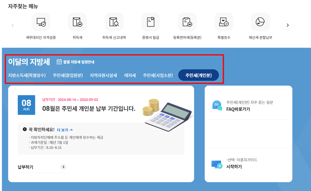 ▶ 사업소분 : 8월1일 ~ 8월31일까지 신고납부