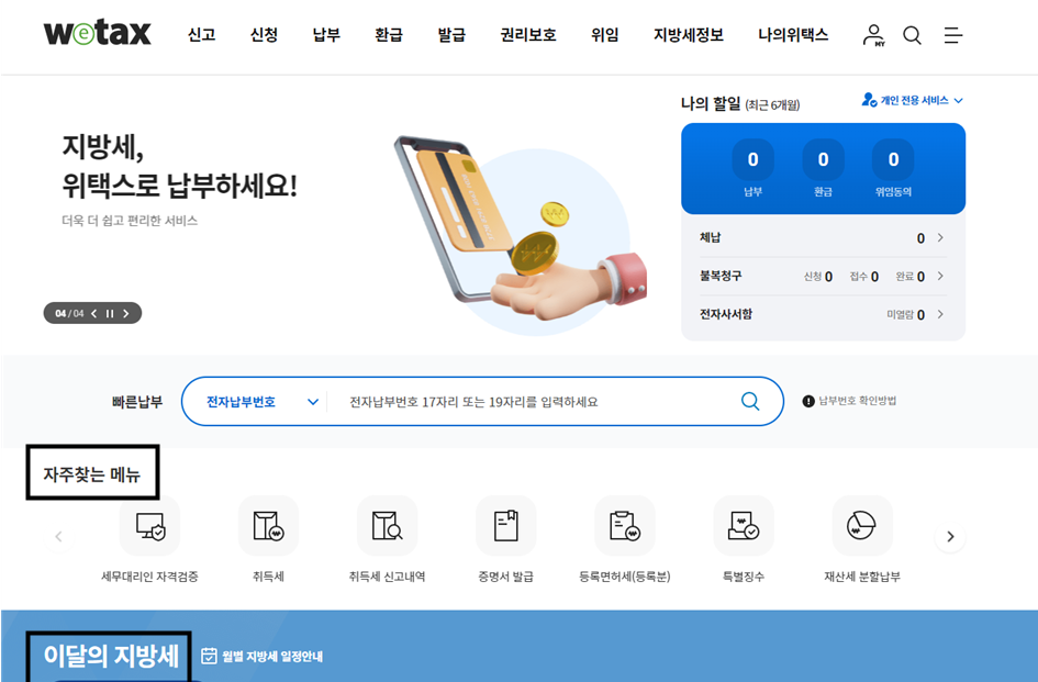 각 사이트에 로그인 후 고지서에 기재된 납부 번호를 입력하면 온라인으로 세금을 납부할 수 있습니다.
