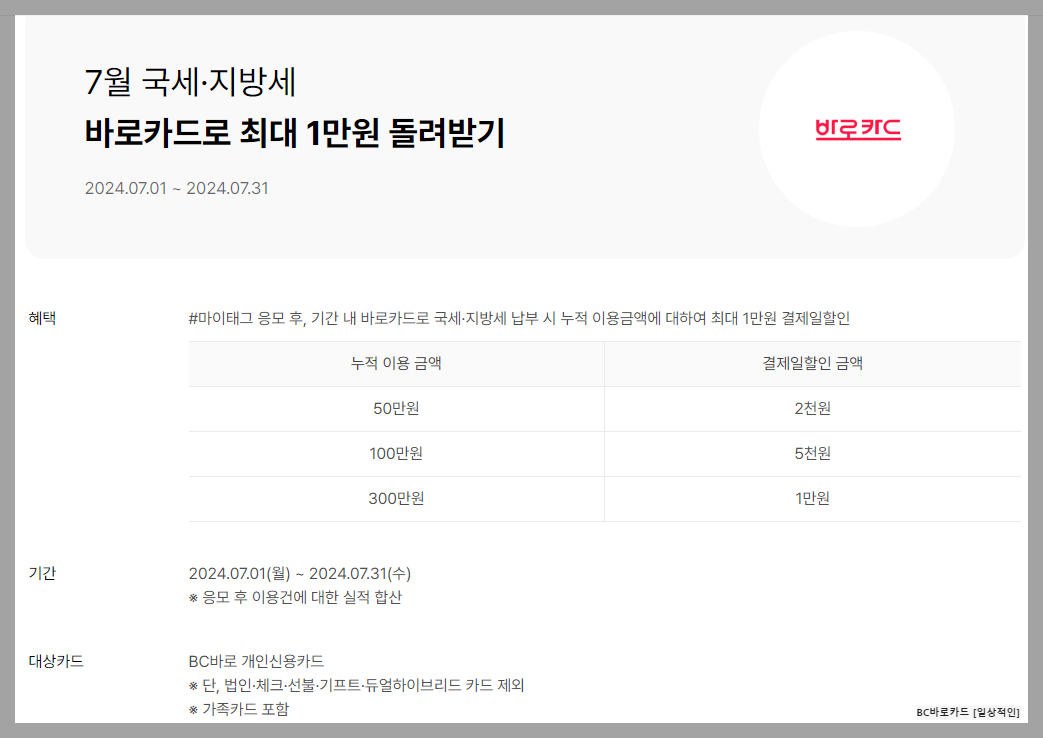 BC카드는 BC바로카드로 재산세 납부 시 할인 혜택을 제공합니다.